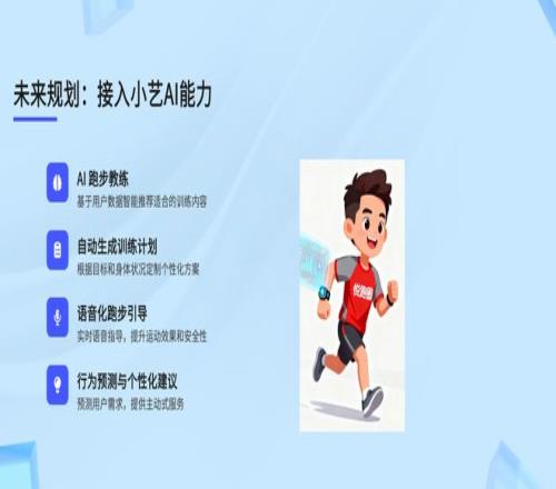 - AI跑步教練:基于用戶數(shù)據(jù)智能推薦訓(xùn)練內(nèi)容,自動生成符合用戶目標(biāo)與身體狀況的個性化訓(xùn)練計劃;