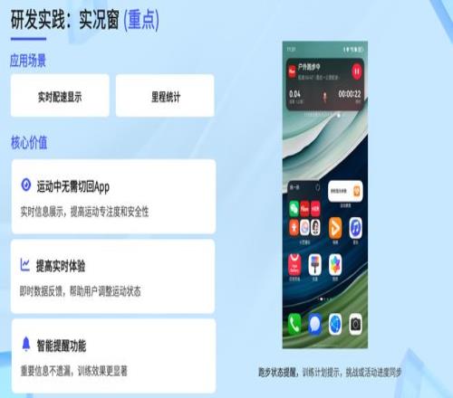 2)實(shí)況窗功能(重點(diǎn)實(shí)踐):作為鴻蒙對運(yùn)動類應(yīng)用最具價值的延伸能力,實(shí)況窗可實(shí)時展示配速、里程、步數(shù)等跑步數(shù)據(jù),核心價值體現(xiàn)在: