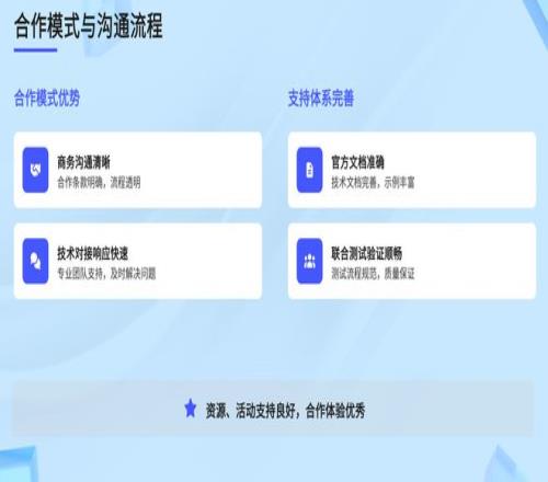 與鴻蒙生態(tài)的合作過程中,商務(wù)溝通清晰、合作條款明確、流程透明;技術(shù)對接響應(yīng)快速,專業(yè)團(tuán)隊及時解決問題;聯(lián)合測試驗證順暢,測試流程規(guī)范保障質(zhì)量;官方還提供鴻蒙生態(tài)學(xué)堂等資源與活動支持,為項目推進(jìn)提供了有力保障。